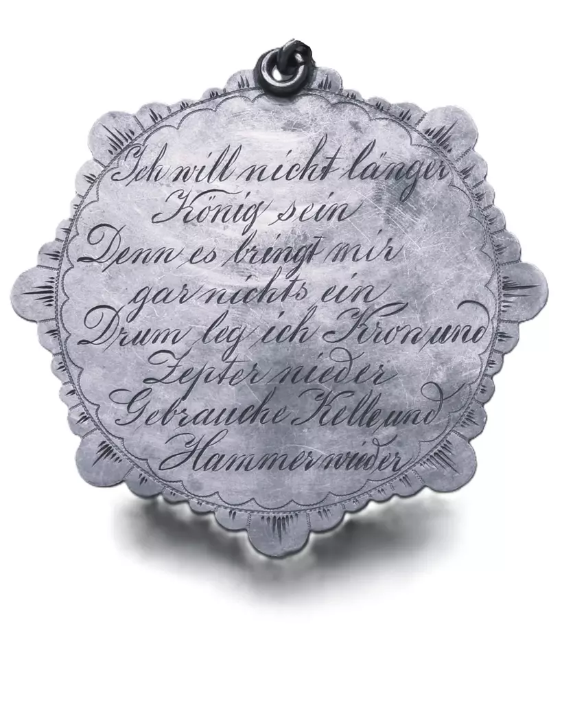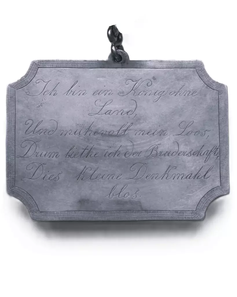 Ich bin ein König ohne Land, Und mühevoll mein Loos, Drum biethe ich der Bruderschaft, Dies kleine Denkmahl blos.
