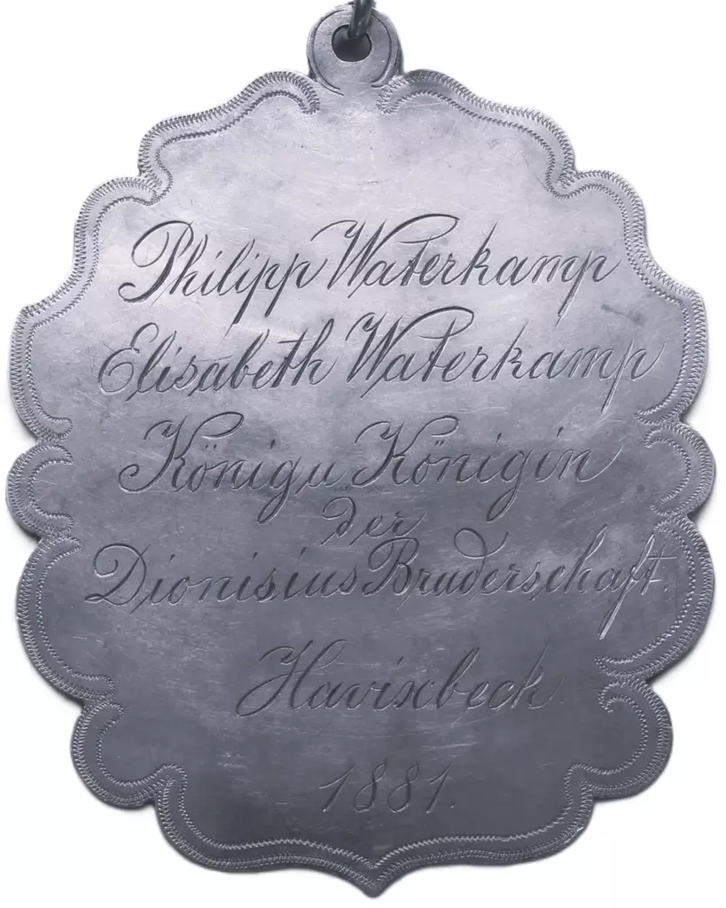 Schmiedemeister Bernard Stade König Elisabeth Wenning Königin. der Bruderschaft zu Havixbeck 1893
