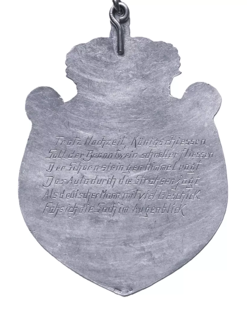 In einer Zeit vor 13 Jahren In der Notzeit und Besatzung warrn Mußt auch die Bruderschaft still sich verhalten Konnt nur die inneren Werte verwalten Nun endlich ist gebrochen der Bann; In neuer Form gings aufs Schutzenfest an Und doch wars ganz die alte Weise Nur nicht mit Büchsenknall, sondern ganz leise. Mit einer Armbrust wurde geschossen Doch hat das uns Schützen nicht verdrossen Dazu kam die seltsame Ironie Dass ich als Bürgermeister d. Demokratie Nun wurde König der Monarchie