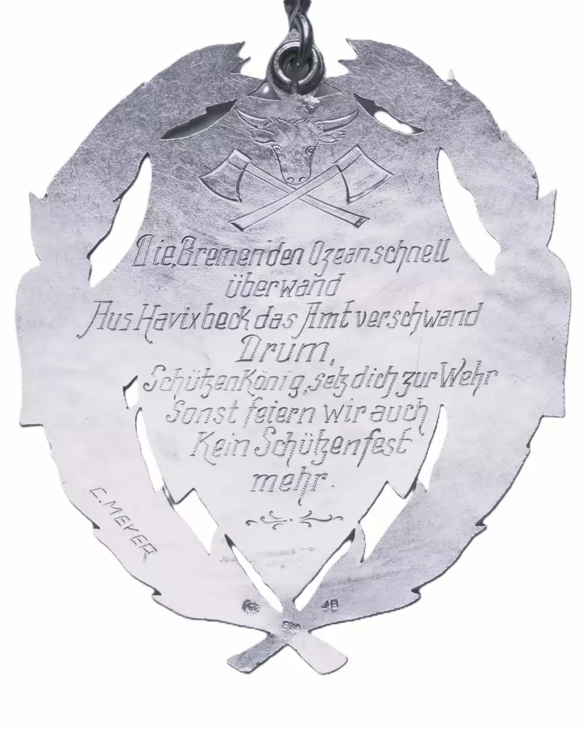 „Die „Bremen“ den Ozean schnell überwand Aus Havixbeck das Amt verschwand Drum, Schützenkönig, setz dich zur Wehr Sonst feiern wir auch kein Schützenfest mehr.“