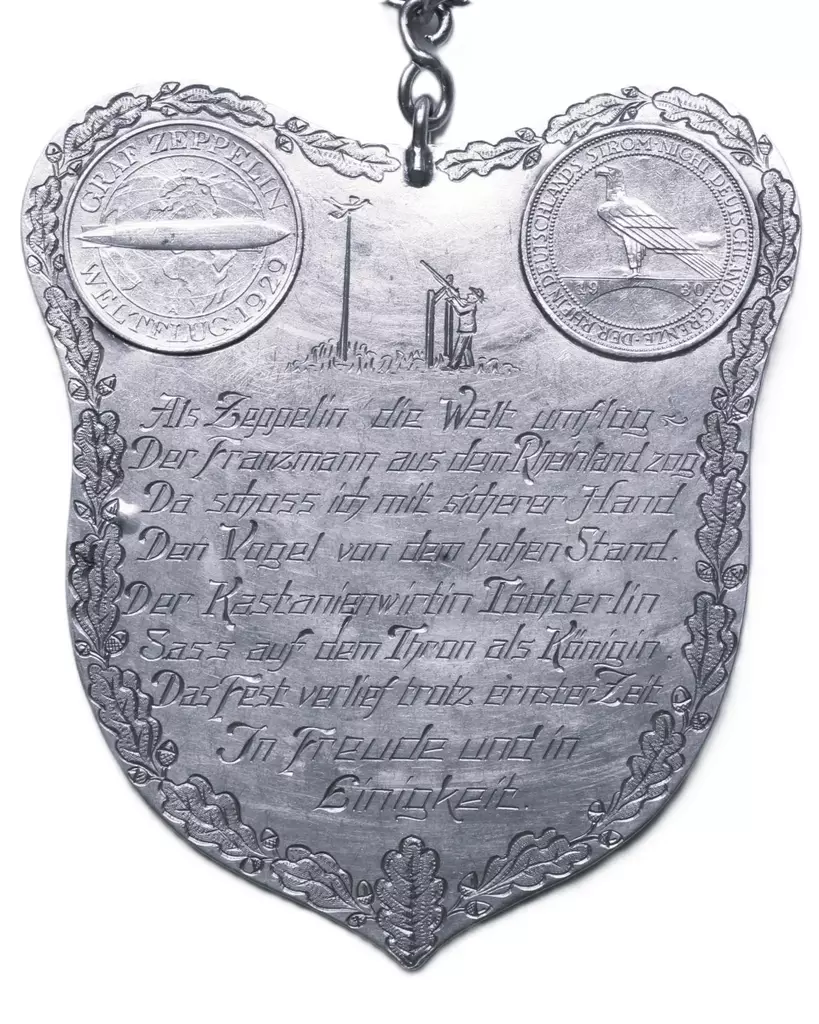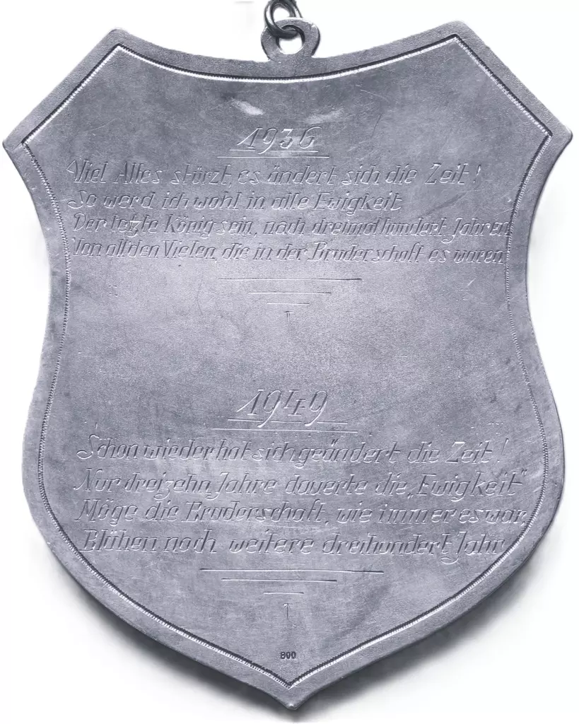 1936 Viel Altes stürzt, es ändert sich die Zeit! So werd ich wohl in alle Ewigkeit Der letzte König sein, nach dreimal hundert Jahren Von all den Vielen, die in der Bruderschaft es waren.