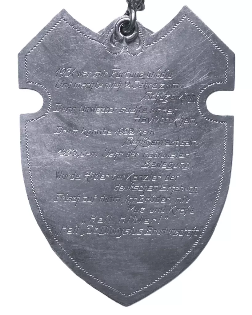 Und machte mich 2 Jahre zum Schützenkönig Denn Unwetter suchte unser Havixbeck heim, drum konnte 1932 kein Schützenfest sein. 1933, dem Jahr der nationalen Bewegung, Wurde Hitler der Kanzler der deutschen Erhebung Frisch auf drum, ihr Brüder, mit Mut und Kraft „Heil Hitler!“ „Heil St. Dionysius Bruderschaft“