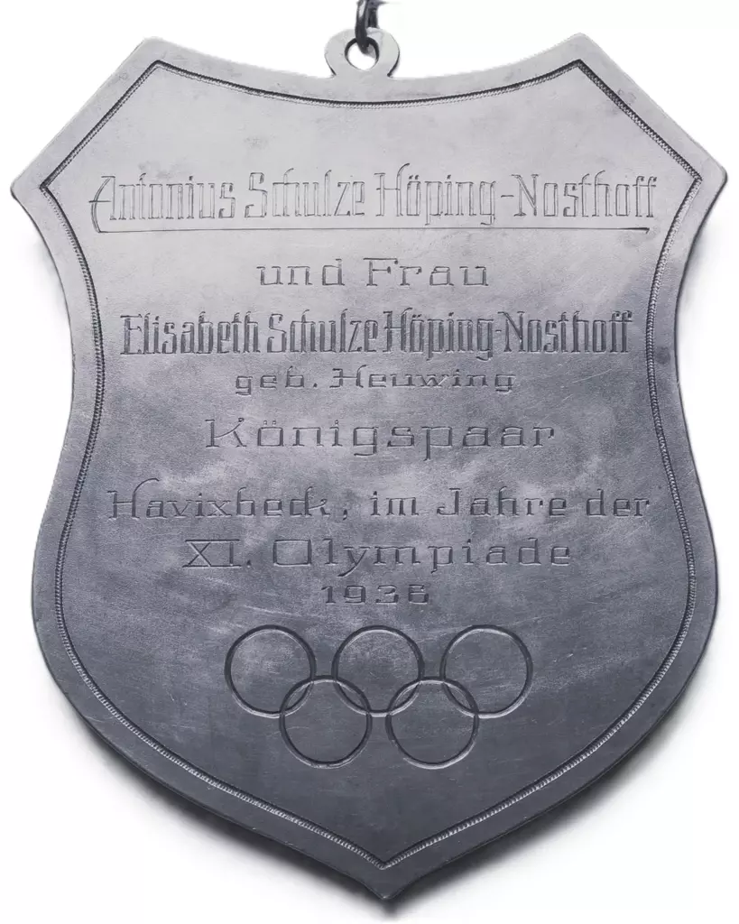 „Antonius Schulze Höping-Nosthoff und Frau Elisabeth Schulze Höping-Nosthoff geb. Heuwing Königspaar Havixbeck, im Jahre der XI. Olympiade 1936“
