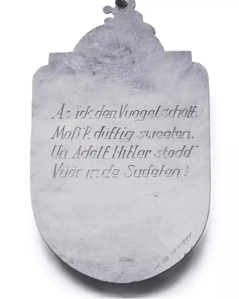 Äs ick den Vuogel scholt, Moß‘ düftig sweeten. Un Adolf Hitler stodd‘ Vüör in de Sudeten!