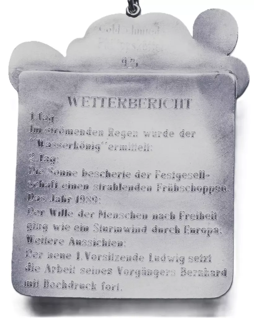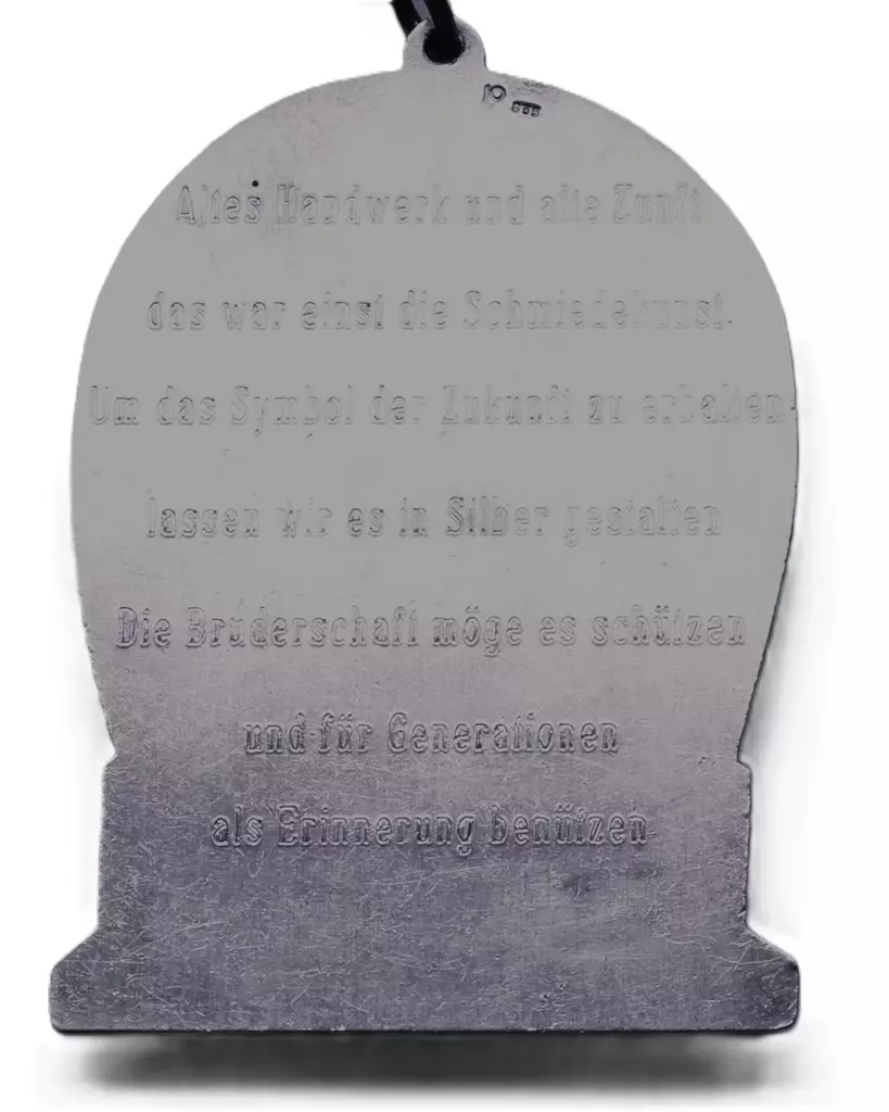 Altes Handwerk und alte Zunft, das war einst die Schmiedekunst. Um das Symbol der Zukunft zu erhalten, lassen wir es in Silber gestalten. Die Bruderschaft möge es schützen und für Generationen als Erinnerung benützen