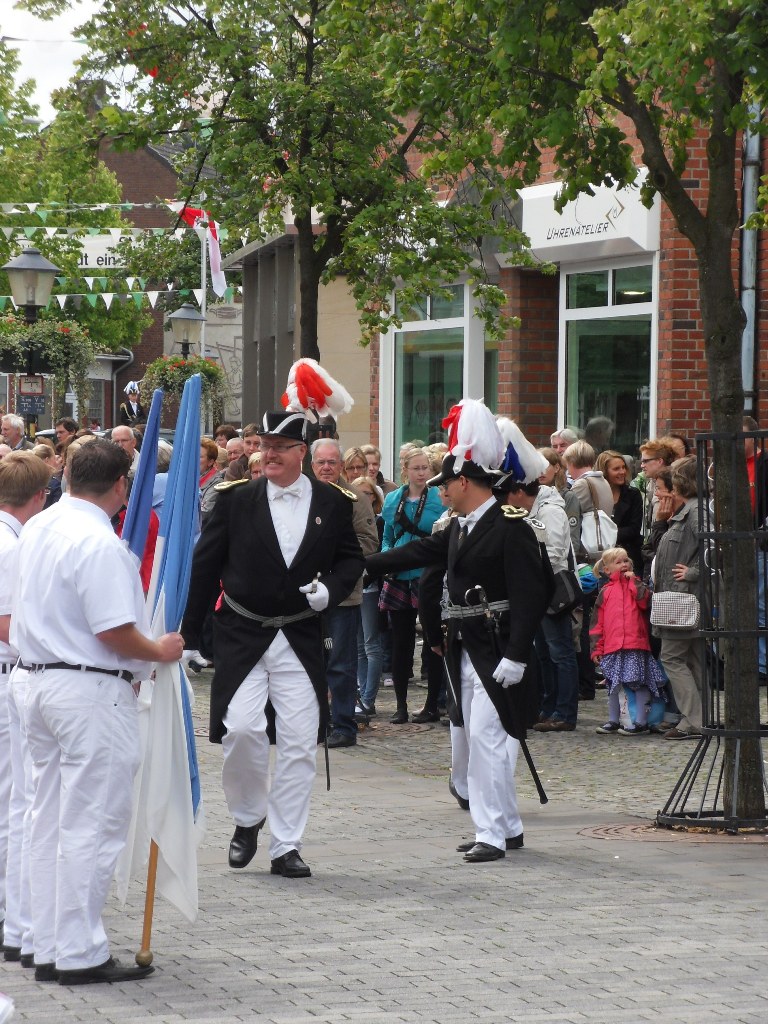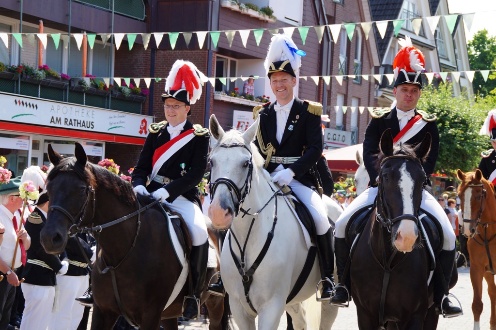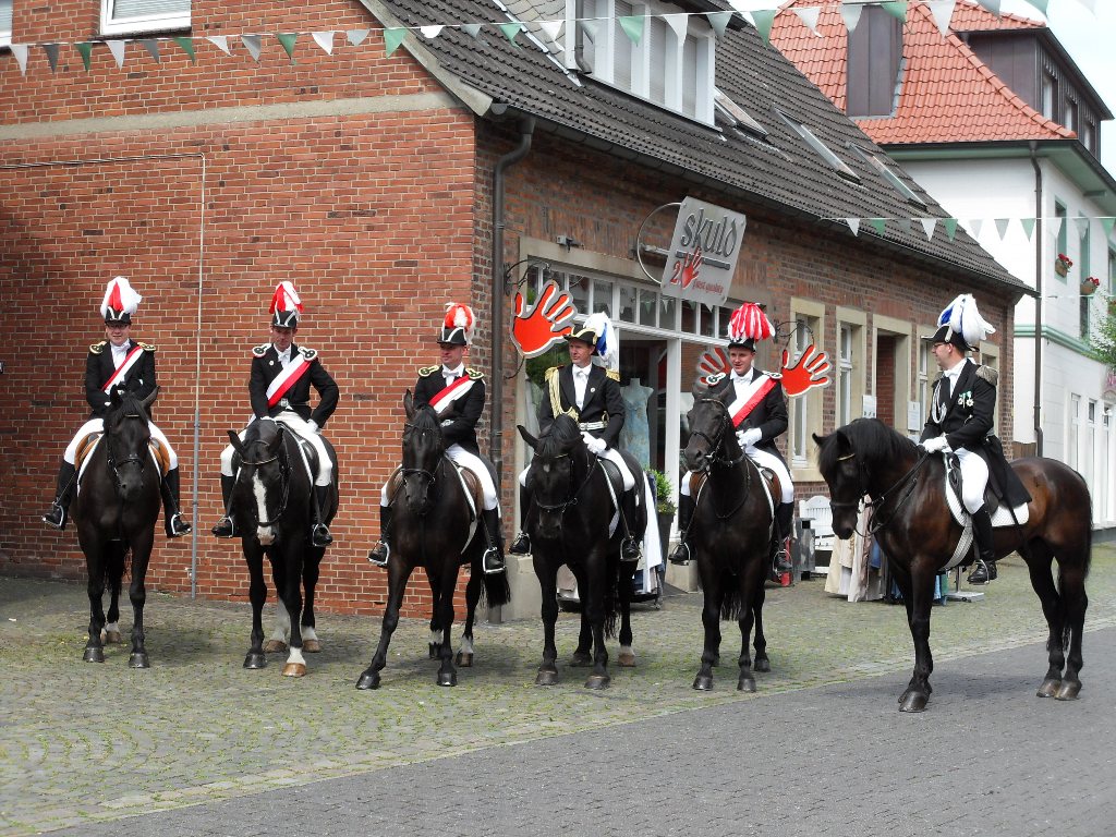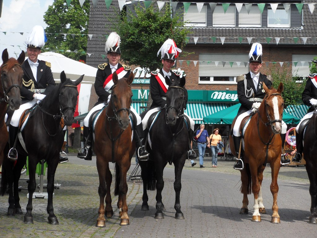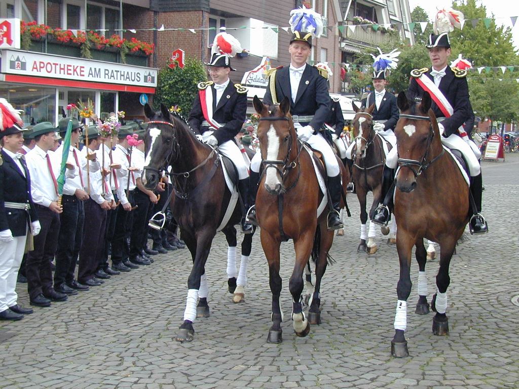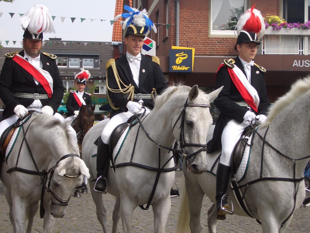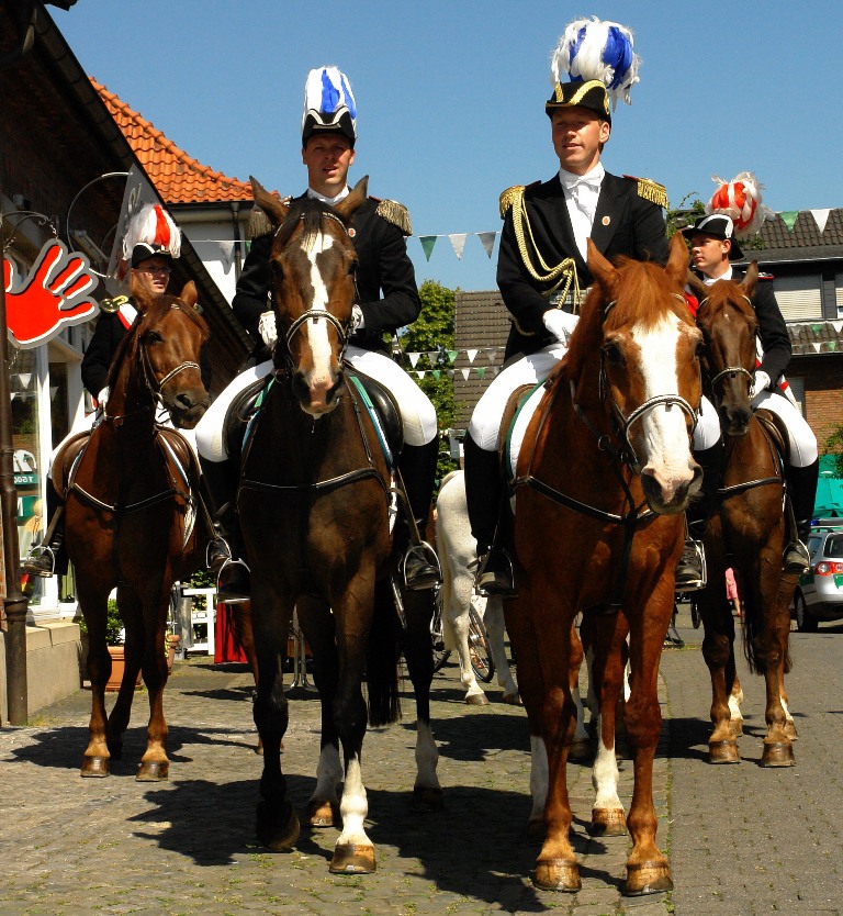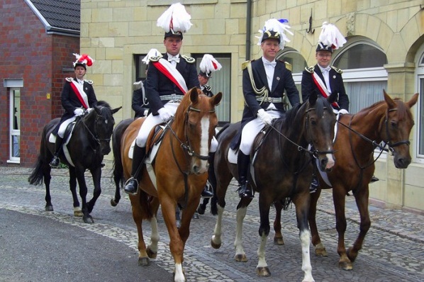 Die Offiziere unterscheiden sich in die berittenen Offiziere und die Offiziere zu Fuß. Beide Gruppen haben Ihren Auftritt beim Schützenfest am ersten Wochenende im Juli. Mit ihren Pferden und Uniformen sind sie der Hingucker an dem Wochenende.