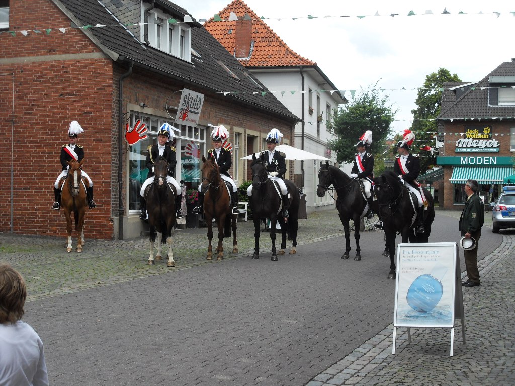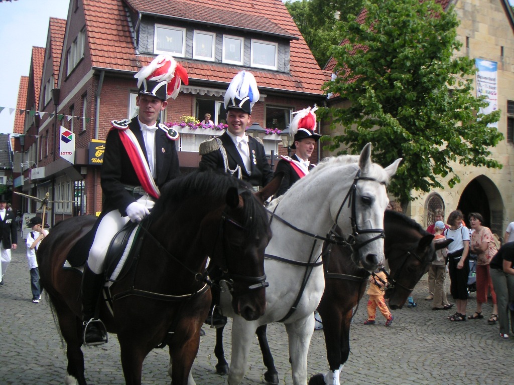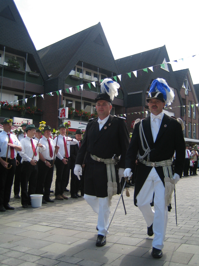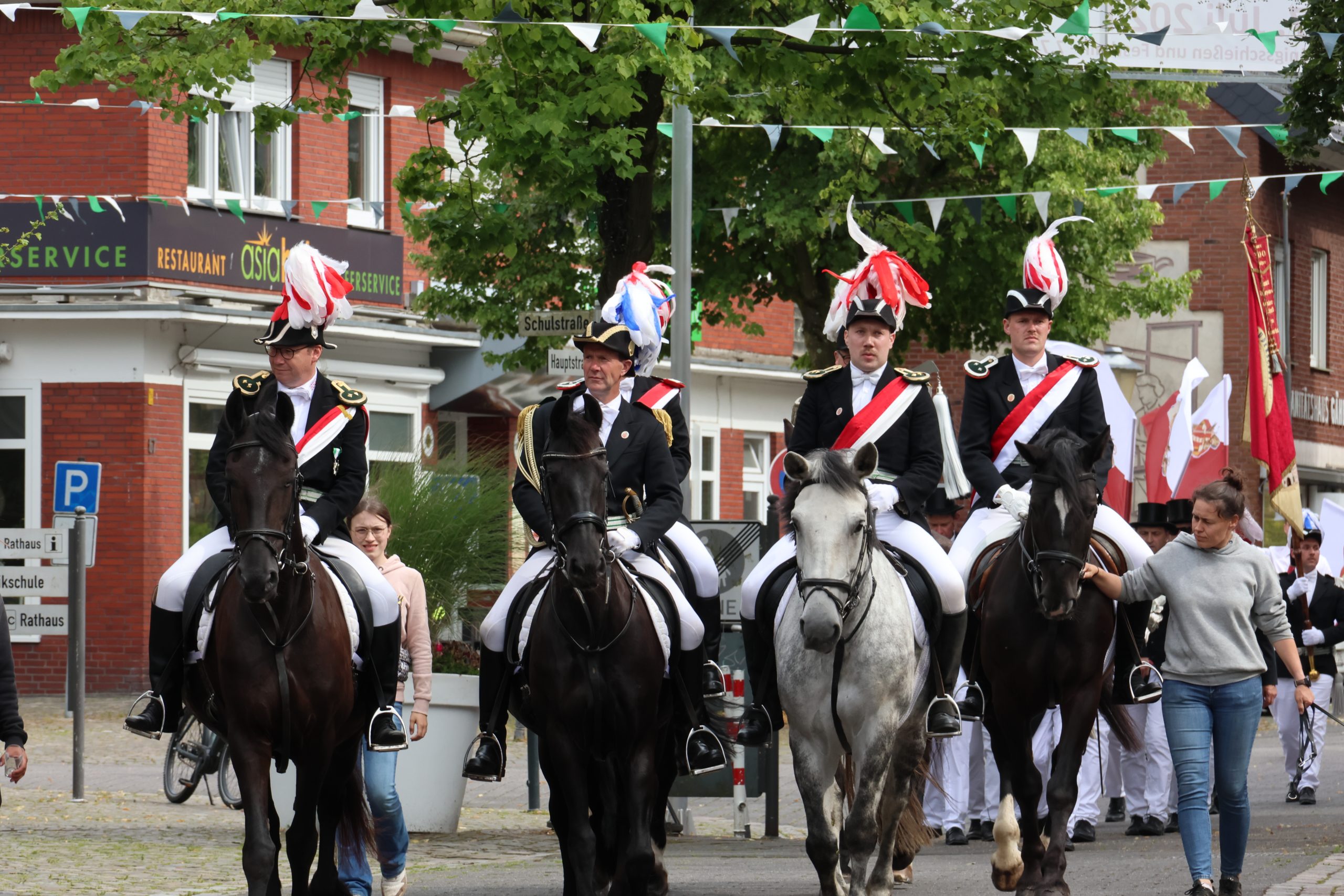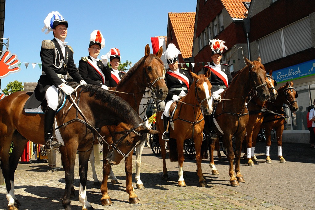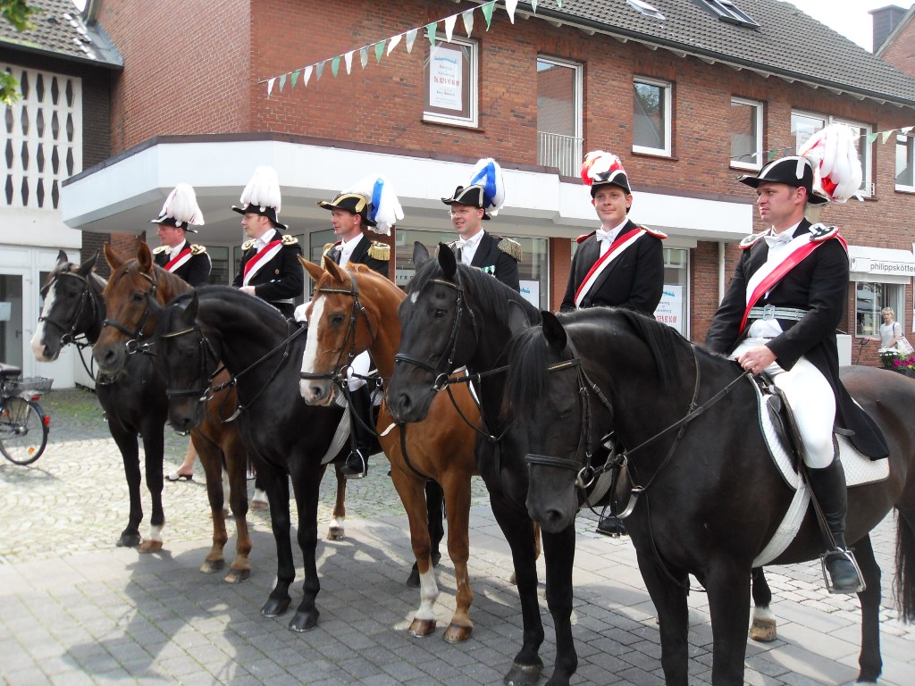 Die Offiziere unterscheiden sich in die berittenen Offiziere und die Offiziere zu Fuß. Beide Gruppen haben Ihren Auftritt beim Schützenfest am ersten Wochenende im Juli. Mit ihren Pferden und Uniformen sind sie der Hingucker an dem Wochenende.
