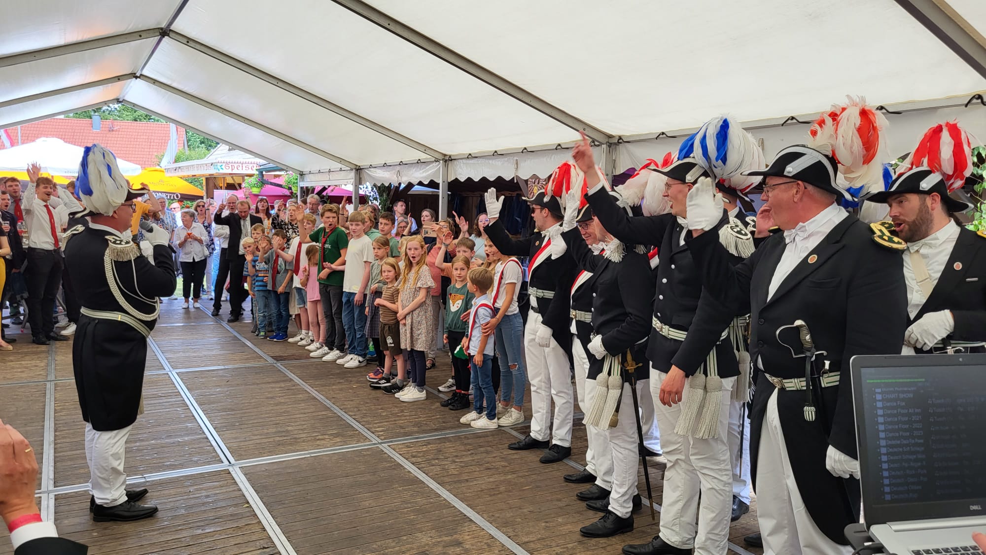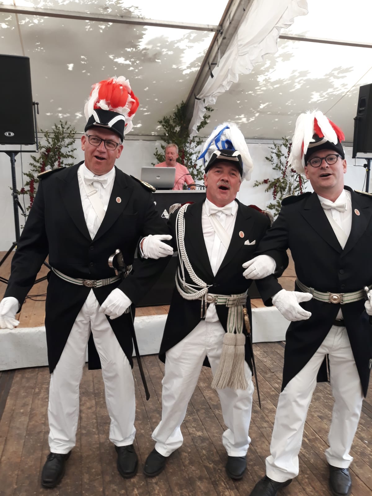 Die Offiziere unterscheiden sich in die berittenen Offiziere und die Offiziere zu Fuß. Beide Gruppen haben Ihren Auftritt beim Schützenfest am ersten Wochenende im Juli. Mit ihren Pferden und Uniformen sind sie der Hingucker an dem Wochenende.
