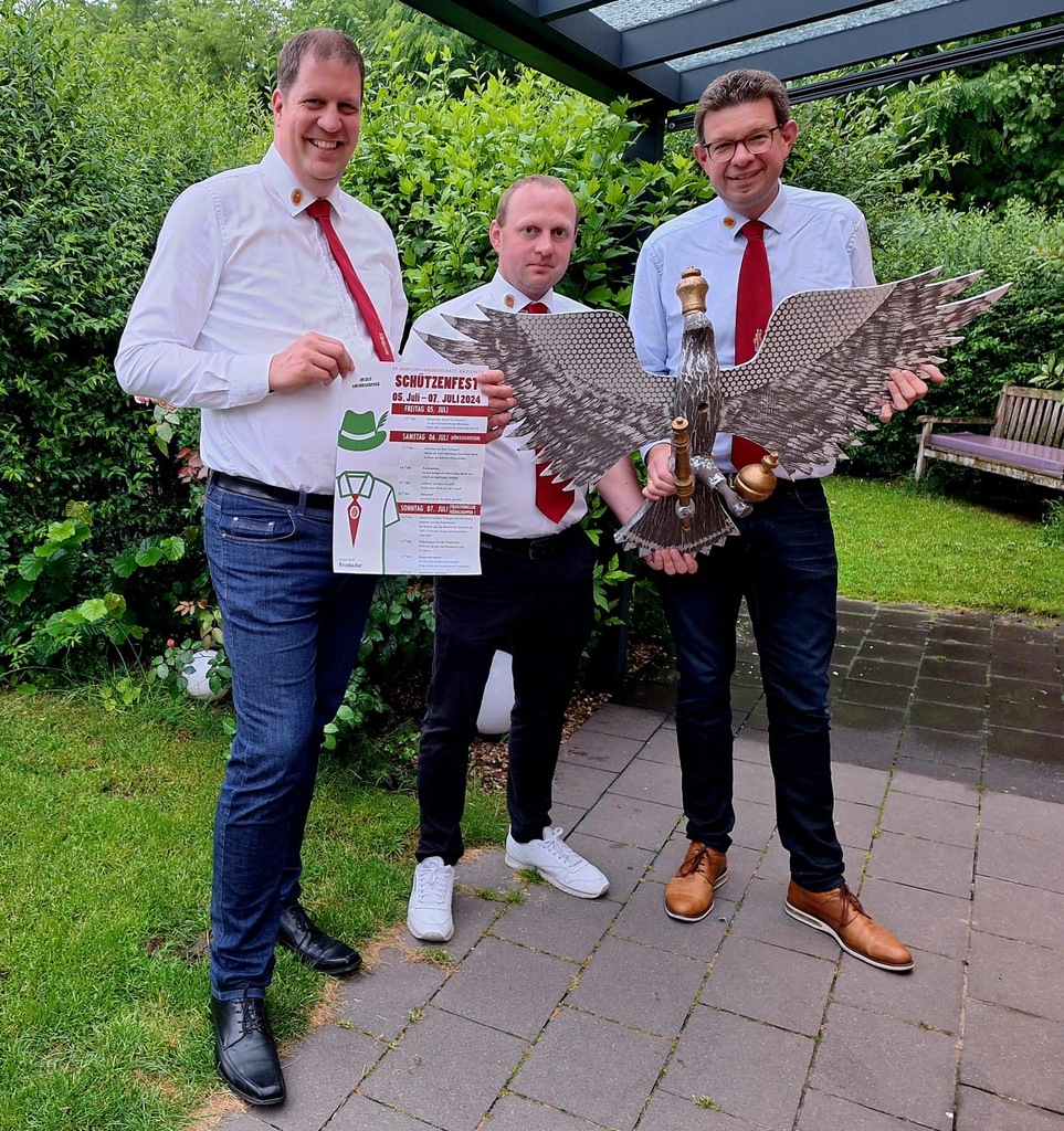 Anschließend zieht der Festzug zum Gasthof Kemper. Dort wird der neue jüngste Scheffer Thilo Saalfeld den Holzvogel nach altem Zeremoniell aufhängen und verteidigen.